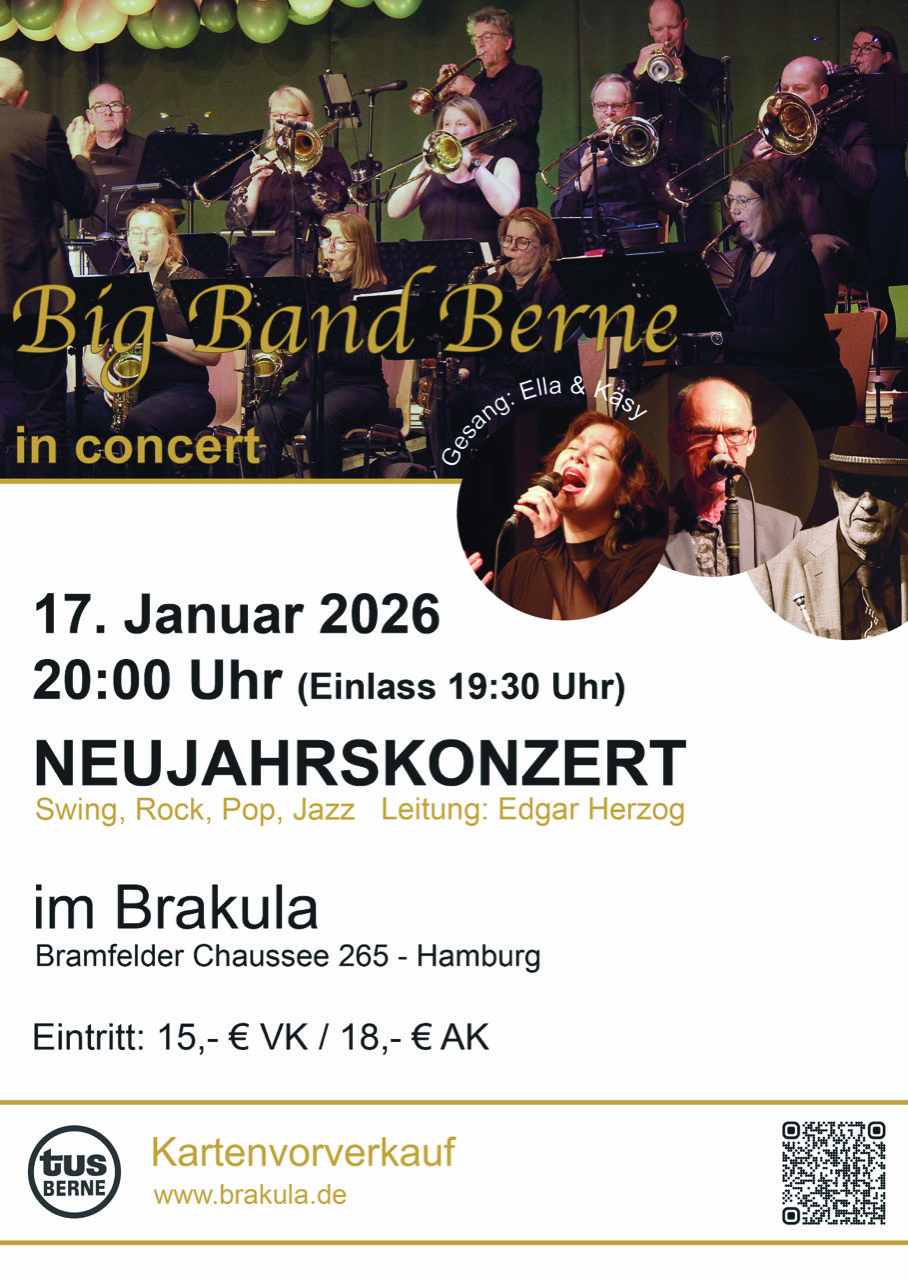 Endlich: Big Band Berne kommt zu seinen Fans nach Eppendorf! Wir freuen uns auf ein lebendiges Konzert.